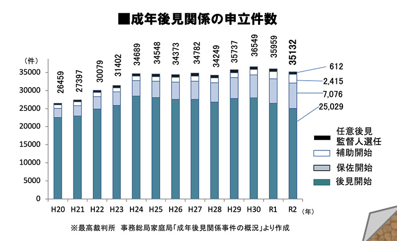※最高裁判所 事務総局家庭局「成年後見関係事件の概況」より作成