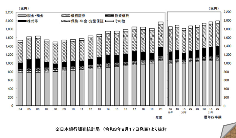 ■家計の金融資産残高 2022 12/01 意外と士業が知らない相続のこと 2022.12.01 ※日本銀行調査統計局 (令和3年9月17日発表)より抜粋 コロナ禍(2020年12月) 家計の金融資産残高は1933兆円で過去最高! 消費を控える一方で株価が上昇したため、資産が増えました。 意外と士業が知らない相続のこと URL Copied! ■「姻族関係終了届」提出件数 ■家計が保有する金融資産残高 関連記事 相続相談事例集:投資信託を相続後に兄弟で分けたい 2024.06.01 相続相談事例集:祭祀承継の在り方とは 2024.06.01 相続相談事例集:名寄帳から漏れた不動産 2024.06.01 相続相談事例集:相続放棄をしても受け取れるお金はある・・・? 2024.06.01 相続相談事例集:相続した「物置」は課税対象外? 2024.05.01 専門家にインタビュー「家族信託にかかる税金は?」「家族信託の契約状況は?」 2024.04.16 専門家にインタビュー「家族信託に適した人は?」「報酬の目安は?」 2024.04.15 専門家にインタビュー「家族信託とは?」「家族信託のメリットとデメリット」 2024.04.15 「士業が知らない相続のこと」をもっと見る