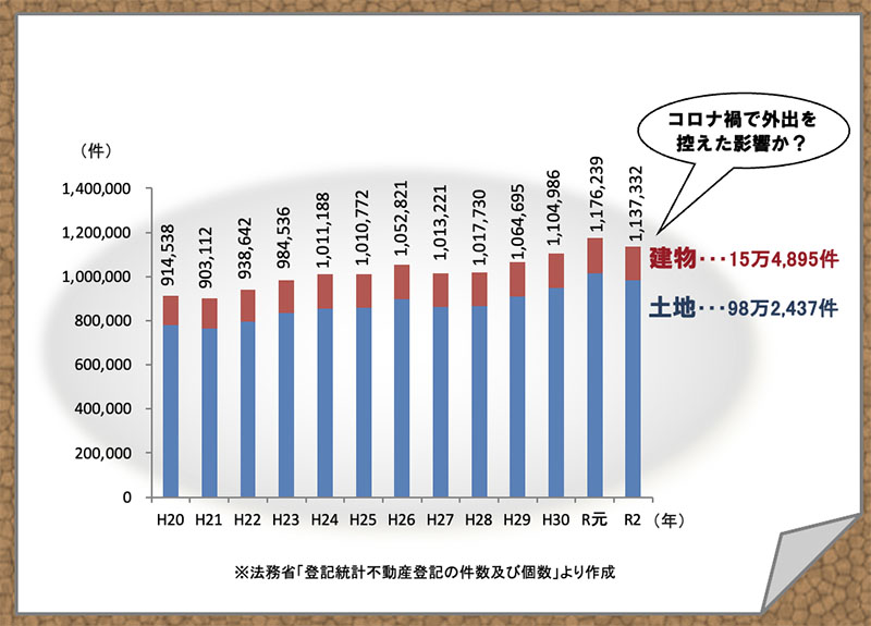 ※法務省「登記統計不動産登記の件数及び個数」より作成