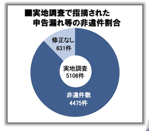 実地調査が入った中で、申告漏れ等の非違件は87.6%見つかっており、19事務年度85.3%、18事務年度85.7%よりも比率は上がっている。
